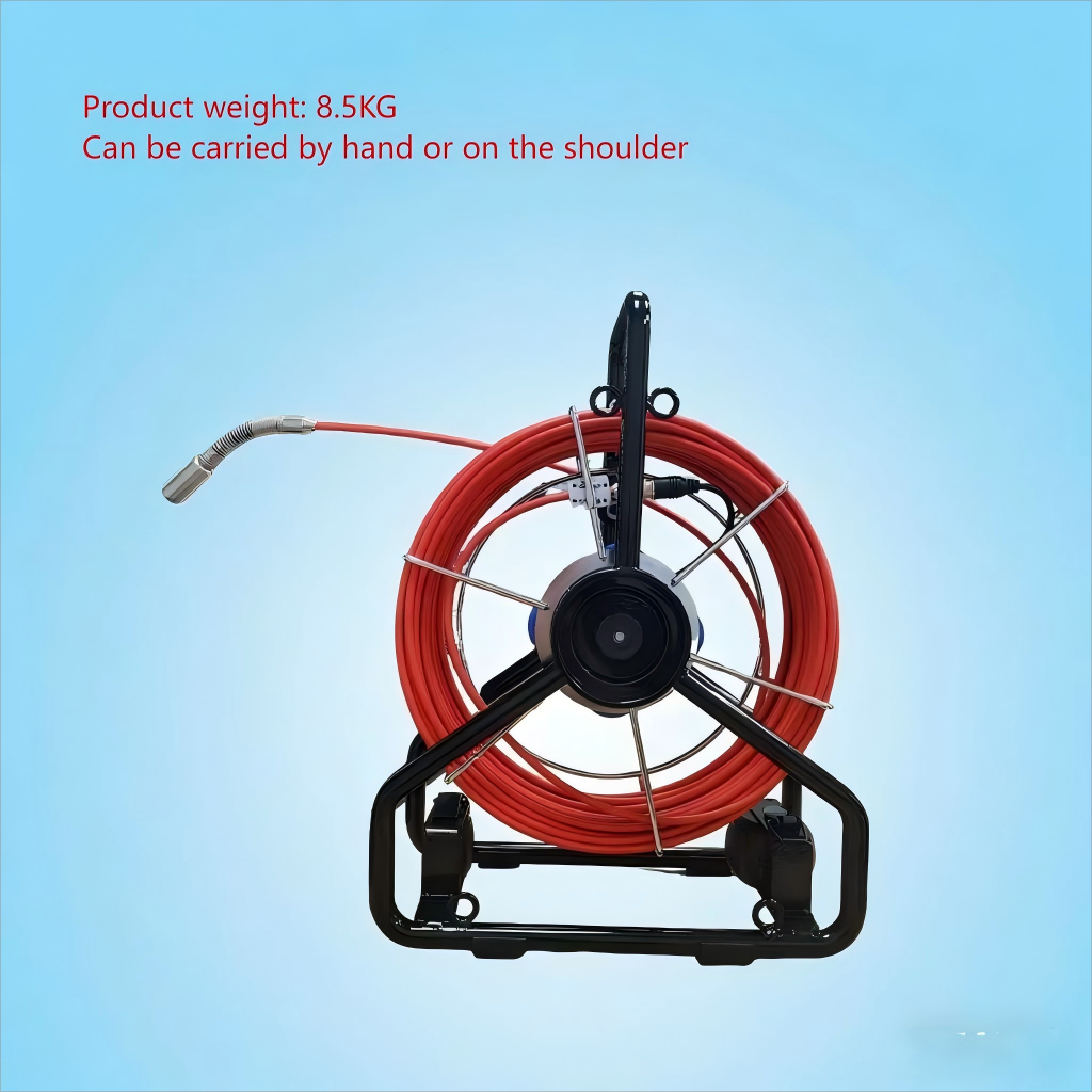 The hidden internal conduit has a 40-meter (130-foot) long cable, allowing the tunnel to cover straight pipe sections as well as bends and elbows. The system’s built-in measuring instrument can easily calculate the length of the cable deployment, providing you with information about the length of the pipeline or the extension range of the embolism in the pipeline. The push-pull cable uses a unique rubber neck connection bracket, which does not require a traditional spring-type connection and saves the device connector between the bracket and the instant.